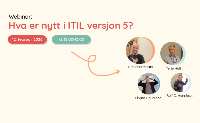 For å gi deg en tydeligere forståelse av hva endringene faktisk innebærer, inviterer vi til live paneldebatt med erfarne ITIL-instruktører og fagpersoner. Her diskuterer vi hva som er nytt i ITIL® 5 – og hvordan du kan forholde deg til overgangen fra ITSM til DPSM i praksis.